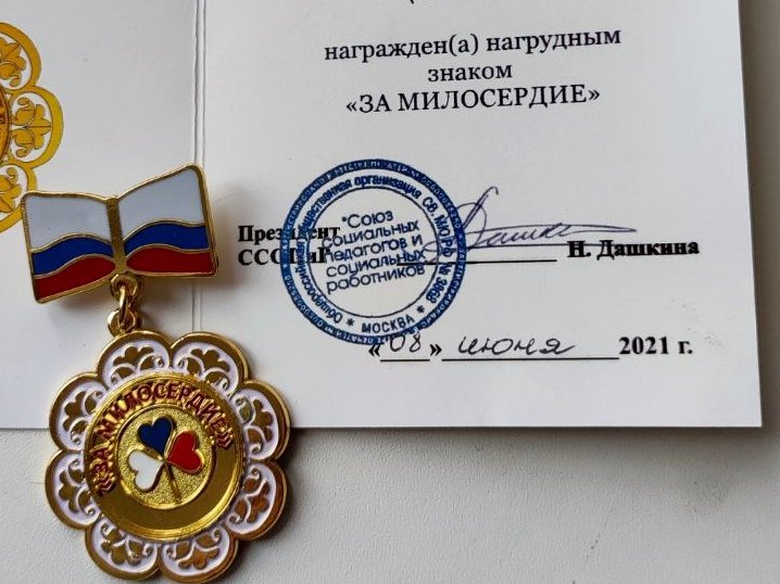 Почетную награду получил и сам Алексей Саклаков - нагрудный знак "За милосердие" общероссийской общественной организации «Союз социальных педагогов и социальных работников».