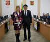 Апрельская сессия началась с церемонии награждения. Спикер краевого парламента Кон Ен Хва вручил медаль Законодательного Собрания "Знак Почета" художественному руководителю ансамбля песни и танца Военно-исторического центра "Дом офицеров Забайкальского края" Инне Евтеевой.
